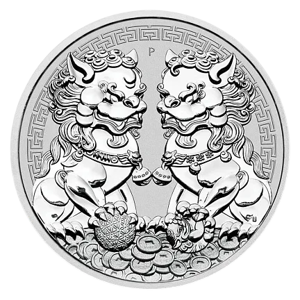 Монета «Львы-хранители Пиксиу», 2020 г., Серебро, 31,1 гр., проба 999.9, АВСТРАЛИЯ